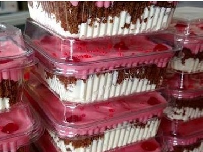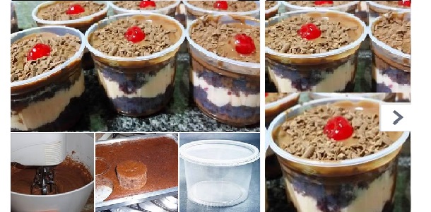 Poner dentro de la olla pequeña, una fina capa de ganache, una plancha de bizcocho, una capa de crema batida y terminar lugar otra capa de ganache.