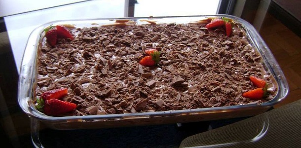 Junte o creme de leite sem o soro com o doce de leite e o chocolate em pó