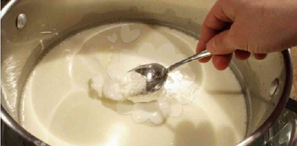 Si no tenemos máquina para yogures debemos calentar los ingredientes a fuego medio hasta que alcancen los 85º, un poco antes de que la mezcla hierva y empiece a humear. Dejamos enfriar hasta los 45º-40º y vertemos en un recipiente que debemos tapar muy bien.