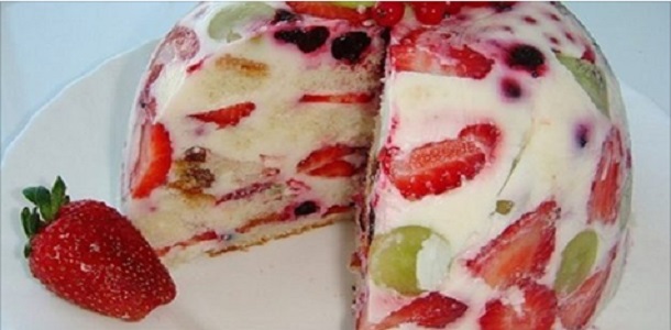 - Corta las frutas, colócalas en el fondo del molde. Cúbrelas con jalea y pongálas en el refrigerador hasta que se solidifique.
