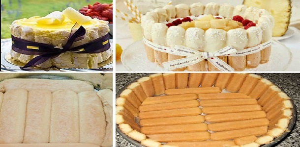 Adherir los merengues en los bordes del pastel. Anudado alrededor de la charlotte con una cinta y servir inmediatamente.