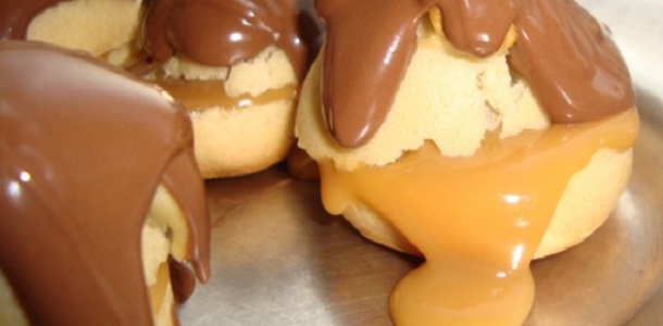 Esperar esfriar e então com o auxílio do bico de confeiteiro rechear com o doce de leite