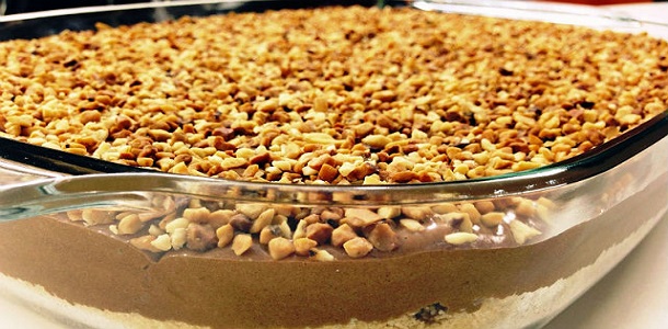 – Coloque o recheio sobre a massa, leve à geladeira por 1 hora, disponha a cobertura e deixe mais 6 horas na geladeira.