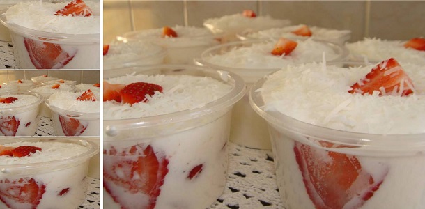 La crema  … fresa ..crema y acabe con el coco rallado!