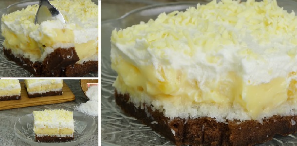1. Preparar la masa de cacao: Mezclar en un bol las claras de huevo con una pizca de sal, añadir el azúcar, las yemas, luego, la harina mezclada con la levadura y el cacao en polvo. Mezclar bien hasta conseguir una composición sin bulto. Vierta la composición en una bandeja del tamaño (30 x 40 cm) empapelado con papel para hornear. Hornear a 180°C durante 15 minutos.
