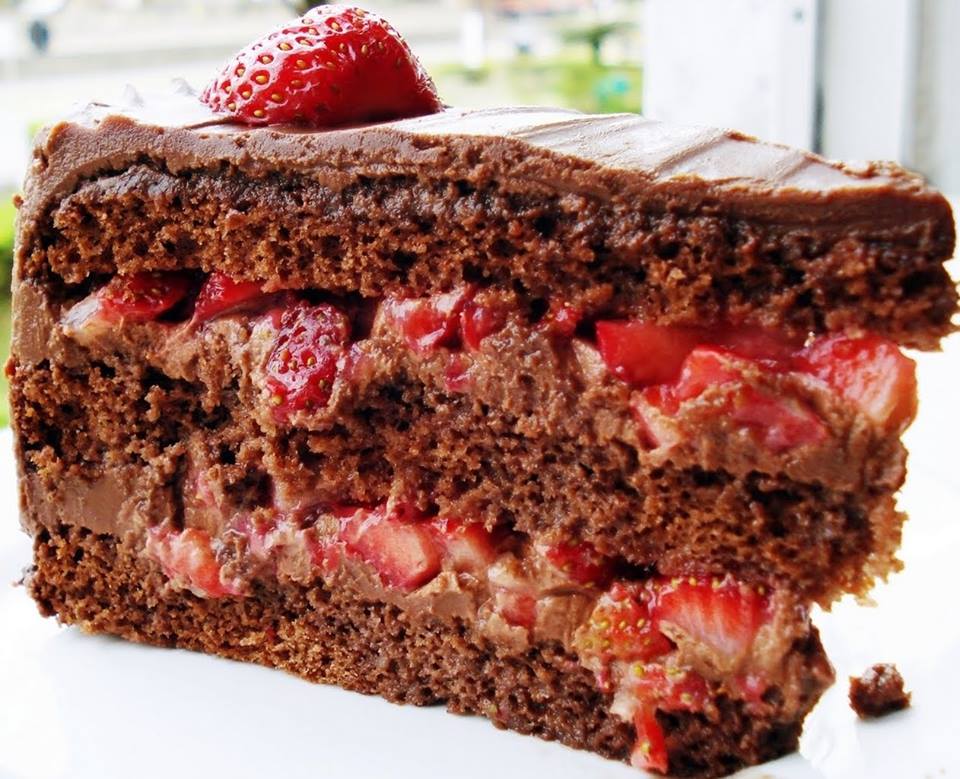 Bolo sensação soberana de morango. Bolo de chocolate ao leite com recheio e coberturas de morango, no estilo do chocolate sensação. Uma verdadeira delícia!